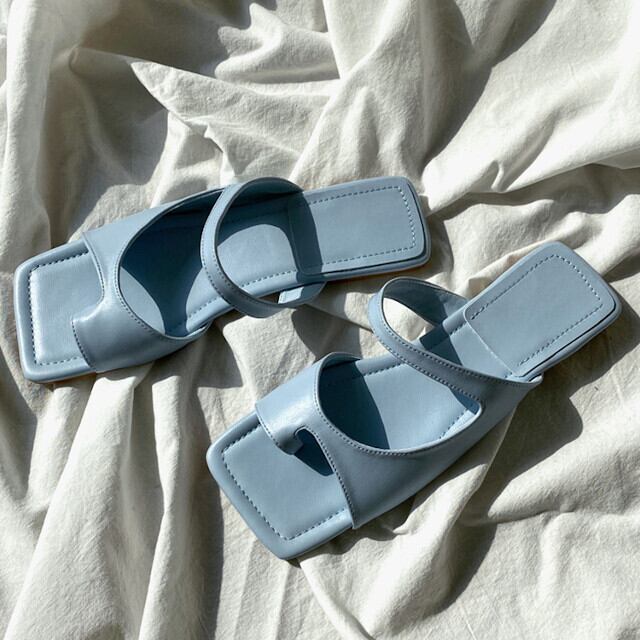 サンダル レディース スクエアトゥ トング ローヒール レザー ぺたんこ ブラック/ブラウン/ホワイト/ブルー 22.5cm/23cm/23.5cm/24cm/24.5cm/25cm
