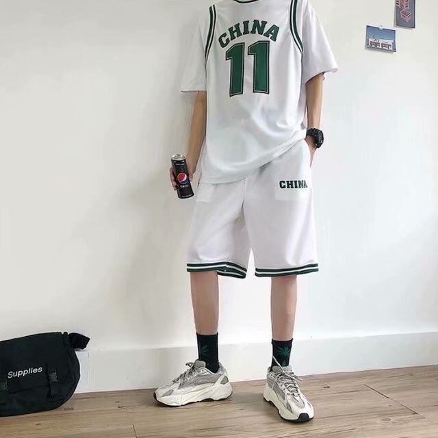 【予約販売】メンズ セットアップ 上下 半袖 バスケット ユニフォーム ハーフパンツ ストリート ブラック ホワイト グリーン 部屋着 ジム スポーツウエア カジュアル 春 夏 大きいサイズ S/M/L/XL/2XL/3XL
