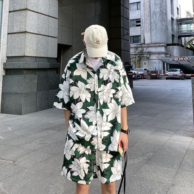 【予約販売】メンズ セットアップ 上下 総柄 アロハ ハーフパンツ 半袖シャツ カラフル カジュアル 春夏 M/L/XL/2XL