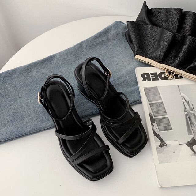 サンダル レディース 厚底 ストラップ プラットフォーム シープスキン レザー ブラック/ベージュ/ブルー 21.5cm/22cm/22.5cm/23cm/23.5cm/24cm/24.5cm/25cm