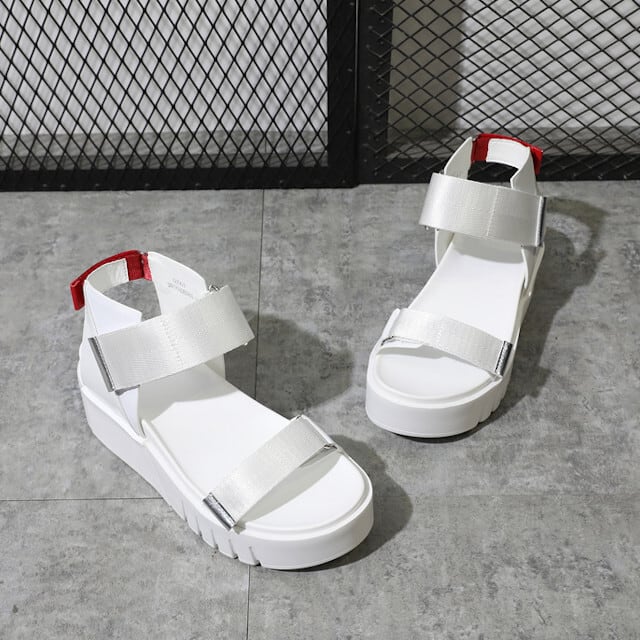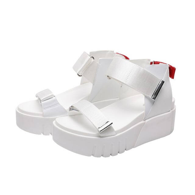 スポーツサンダル レディース サンダル プラットフォーム 厚底サンダル レザー スポーティ スポーツ カジュアル シンプル レッド ホワイト 22cm/22.5cm/23cm/23.5cm/24cm/24.5cm