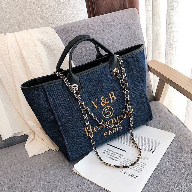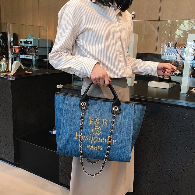 【予約販売】ショルダーバッグ トートバッグ 2WAY レディース 刺繍 デニム生地 キャンバス ロゴ ブラック ブルー シンプル 通勤 こなれ感 お洒落 韓国 トレンド