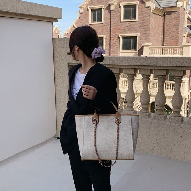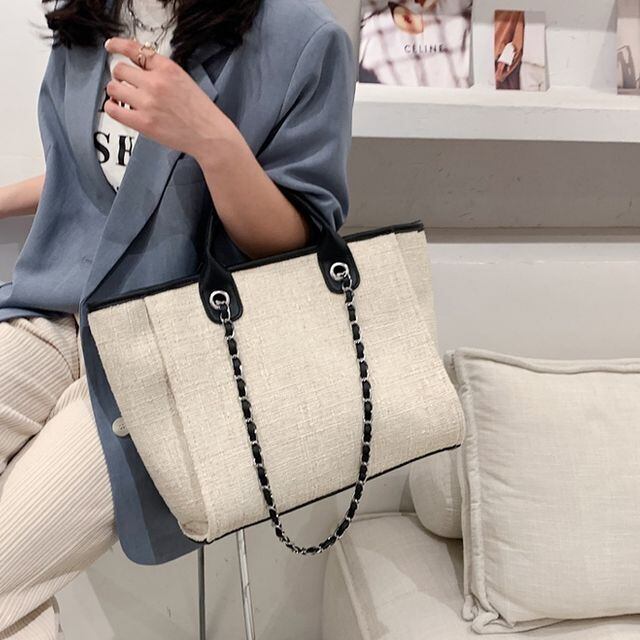 【予約販売】ショルダーバッグ トートバッグ 2WAY レディース 麻 無地 ブラック ホワイト ベージュ シンプル 通勤 こなれ感 お洒落 韓国 トレンド