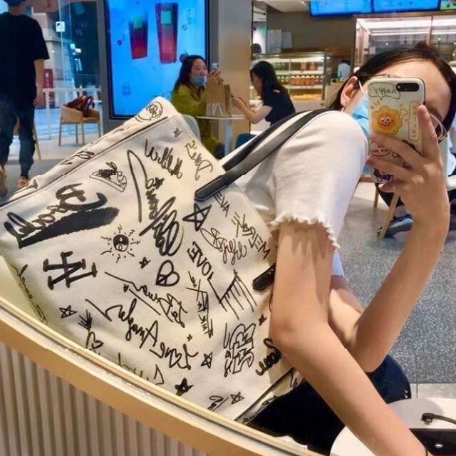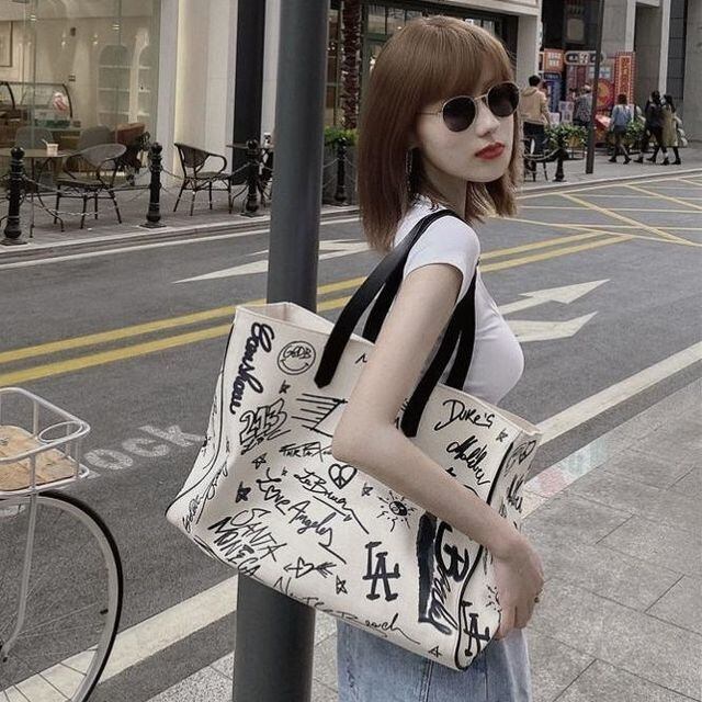 【予約販売】トートバッグ ショルダー レディース ロゴ ホワイト カジュアル 可愛い 通勤 こなれ感 お洒落 韓国 トレンド