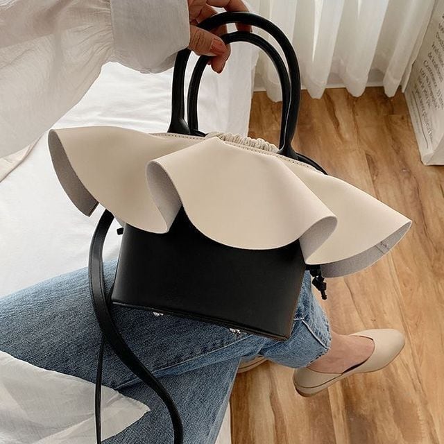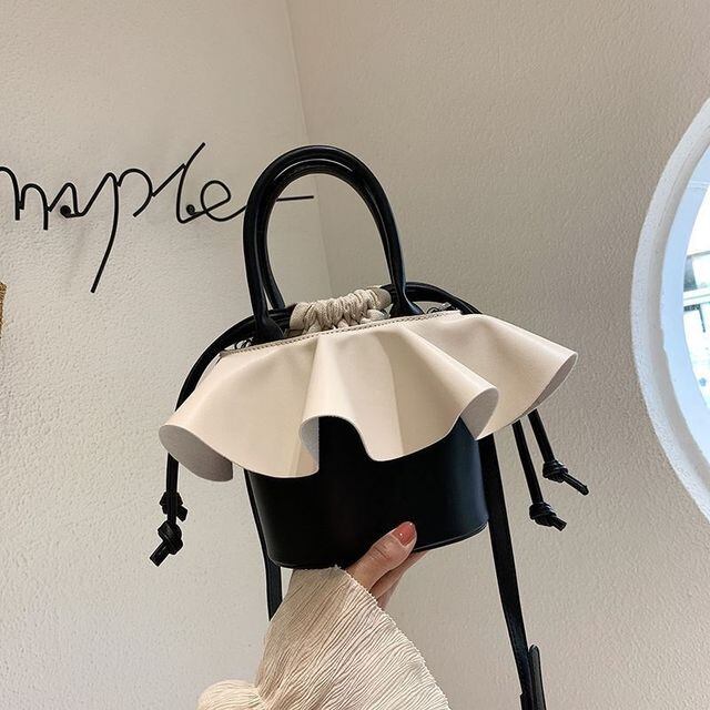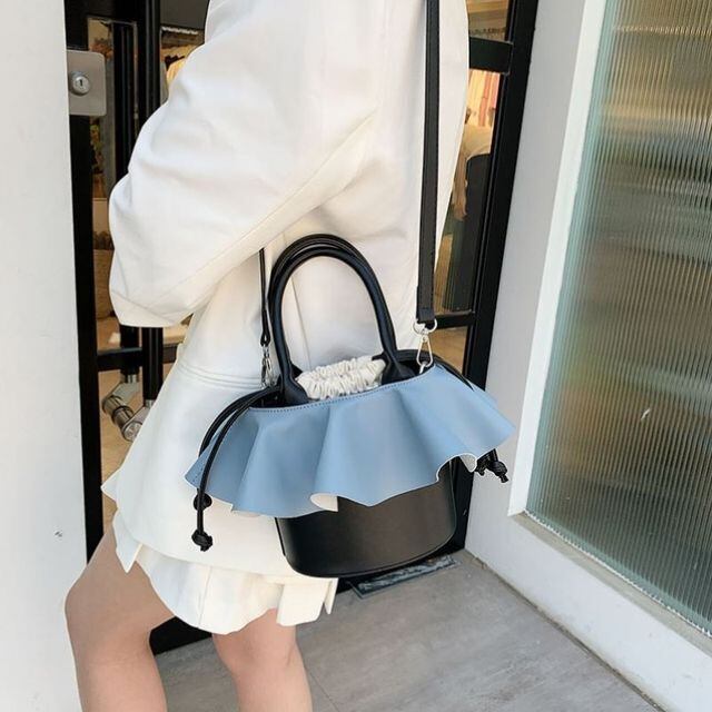 【予約販売】 ショルダーバッグ 斜め掛け 2WAY フリル バケツ型 ミニポシェット レディース ブラック 大人可愛い デート こなれ感 お洒落 韓国 トレンド