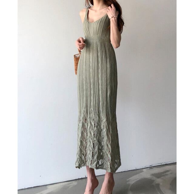 ワンピース サマードレス ニットワンピ レディース マキシ丈 ロングワンピ ノースリーブ 春夏 グリーン/ホワイト/ブラック