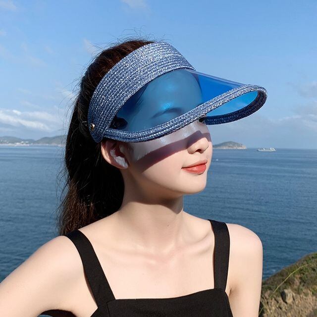 【予約販売】サンバイザー 帽子 レディース メンズ UVカット ストローハット アウトドア 日焼け防止 紫外線 ピンク クリア ブラック ブルー 女優帽 こなれ感 お洒落 韓国 トレンド