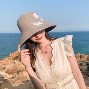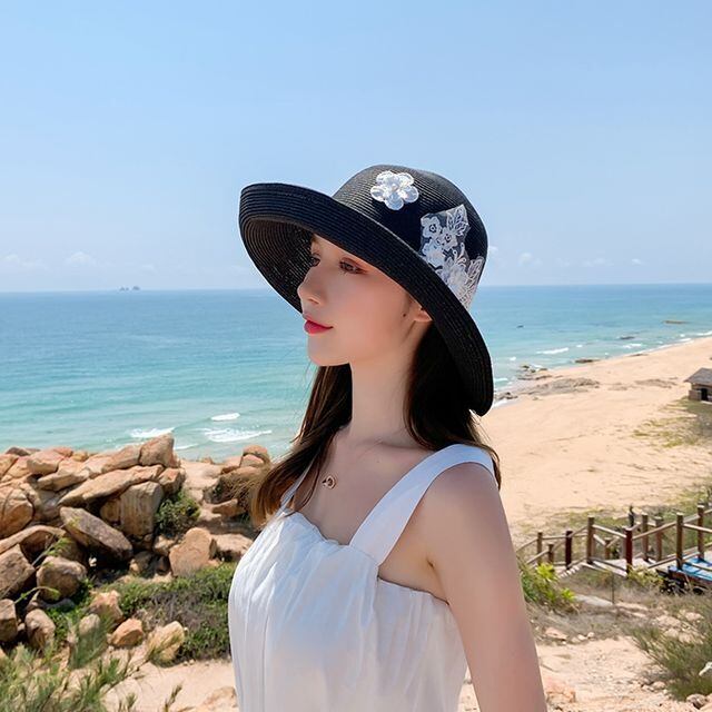 【予約販売】麦わら帽子 ハット レディース UVカット レース 花柄 アウトドア 日焼け防止 紫外線 グレー ベージュ ブラック 女優帽 こなれ感 お洒落 韓国 トレンド