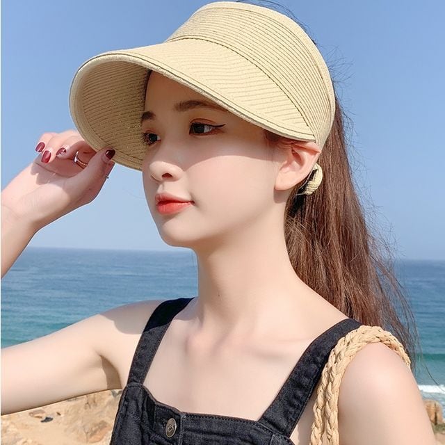 【予約販売】サンバイザー 帽子 レディース UVカット アウトドア 日焼け防止 紫外線 ブラウン ベージュ 女優帽 こなれ感 お洒落 韓国 トレンド
