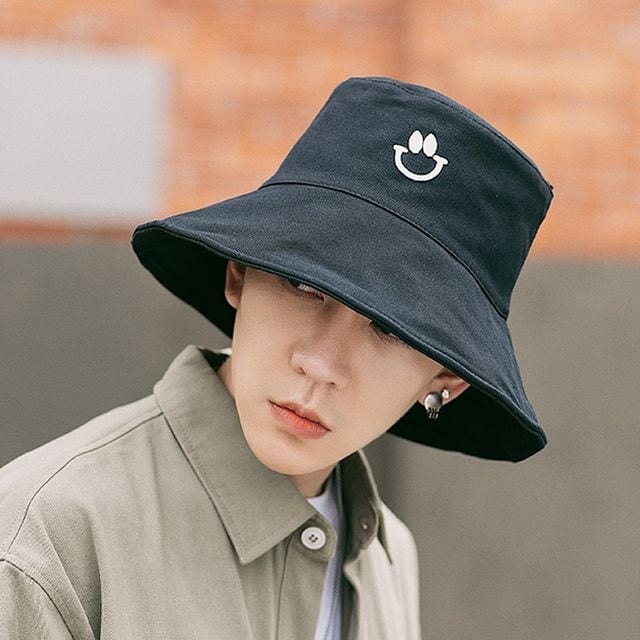 【予約販売】バケットハット メンズ レディース 帽子 ハット アウトドア キャンプ スマイル刺繍 ブラック ホワイト ブルー キャップ ストリート スポーティー ダンス こなれ感 お洒落 韓国 トレンド