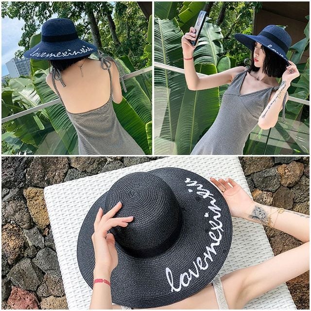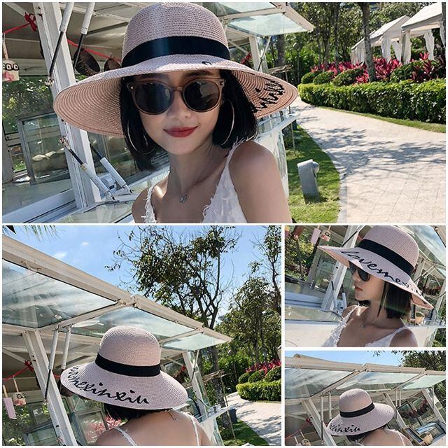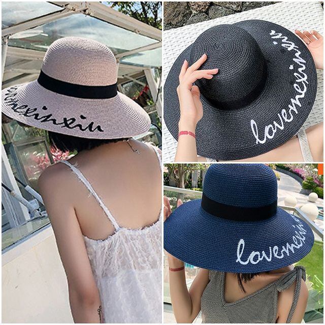 【予約販売】麦わら帽子 刺繍 リボン ハット レディース UVカット アウトドア 日焼け防止 紫外線 ネイビー ベージュ ブラック 女優帽 こなれ感 お洒落 韓国 トレンド