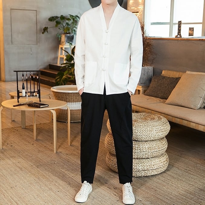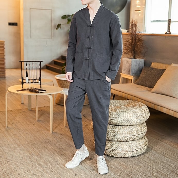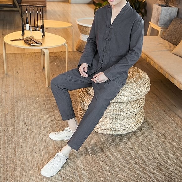 【予約販売】メンズ セットアップ 上下 韓服 生活韓服 ブラック グレー ホワイト 長袖 カジュアル こなれ感 韓国 春夏 BTS M/L/XL/2XL/3XL/4XL/5XL