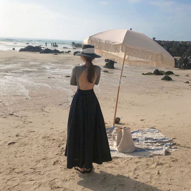 大胆に開いたバックデザインが