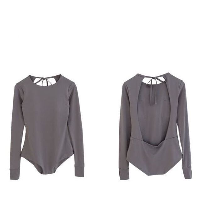 【予約販売】水着 レディース ワンピース ブラック 黒 フリル リボン 背中見せ 長袖 ビーチ リゾート スイムウェア こなれ感 お洒落 韓国 トレンドM/L/XL