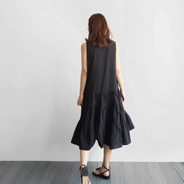 ワンピース サマードレス レディース 切替 ひざ下 ノースリーブ ゆったり デイリー シンプル カジュアル ブラック S/M/L/XL/2XL