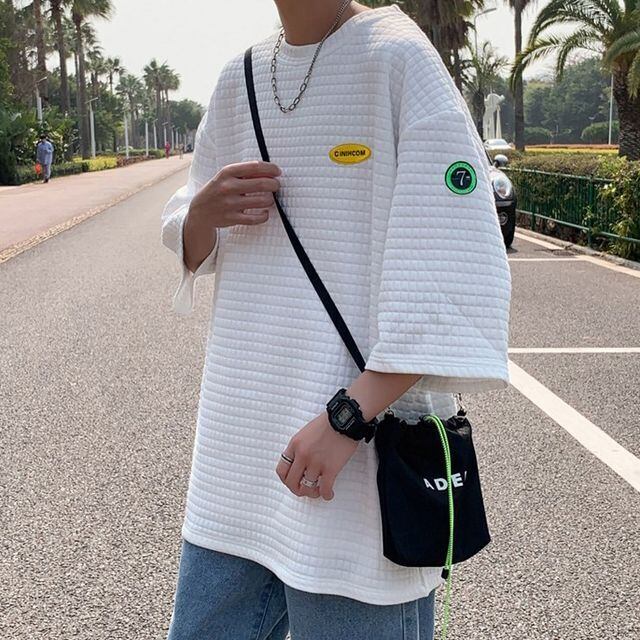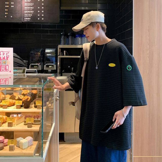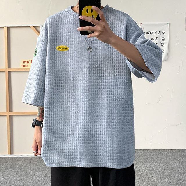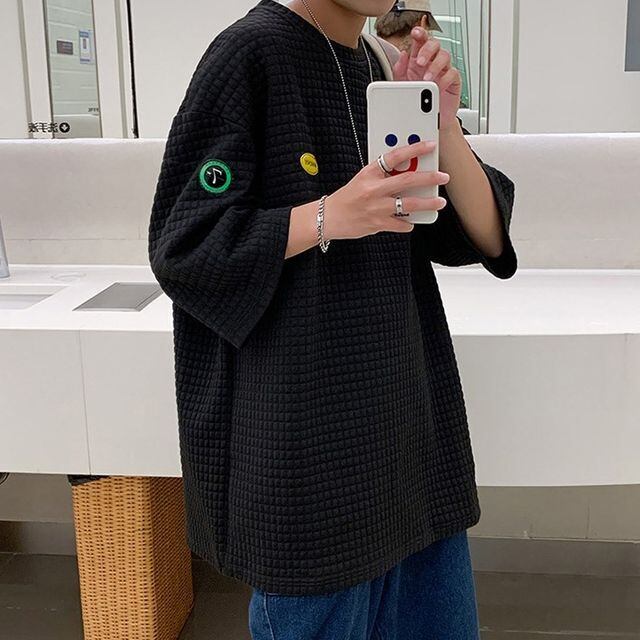 【予約販売】Tシャツ メンズ エンボス ワッフル Tシャツ トップス ホワイト グレー ブラック ゆったり カジュアル こなれ感 お洒落 韓国 トレンド 春 S/M/L/XL/2XL