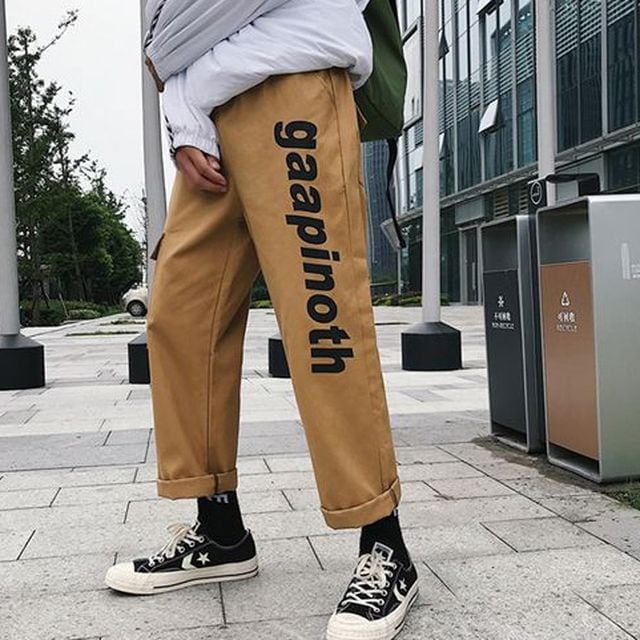【予約販売】パンツ メンズ チノパン ロゴ シンプル ブラック カーキ ベージュ カジュアル ストリート こなれ感 お洒落 韓国 トレンド 春 夏 秋 S/M/L/XL/2XL