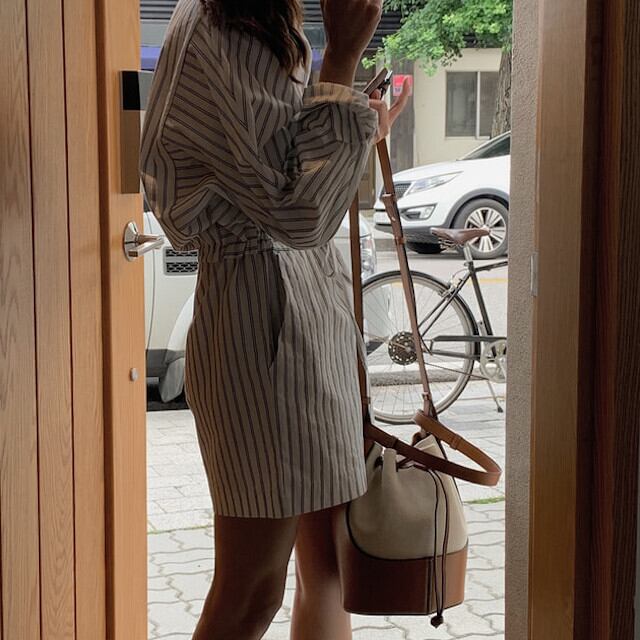 ロンパース レディース オールインワン ナチュラル ストライプ シャツ 爽やか 長袖 ビーチ リゾート ホワイト