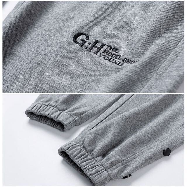 【予約販売】ジョガーパンツ メンズ ボトムス シンプル サイドボタン グレー ブラック スエット きれいめ スタイリッシュ こなれ感 カジュアル 部屋着 韓国 トレンド 春 夏 秋 M/L/XL/2XL/3XL