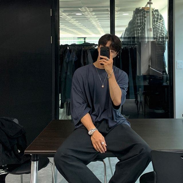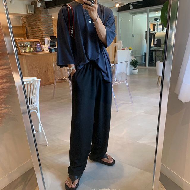 【予約販売】Tシャツ メンズ シンプル こなれ感 肩落ち Tシャツ トップス ネイビー ブラック ゆったり こなれ感 カジュアル お洒落 韓国 トレンド 春 夏 秋 M/L/XL/2XL