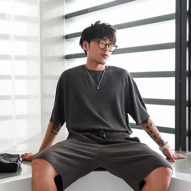 【予約販売】メンズ セットアップ 上下 半袖 ハーフパンツ ストリート ブラック グレー 部屋着 ジム スポーツウエア カジュアル 春 夏 大きいサイズ M/L/XL/2XL