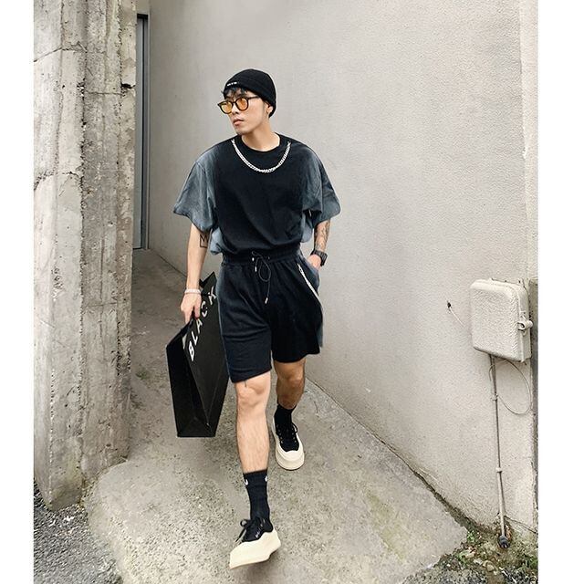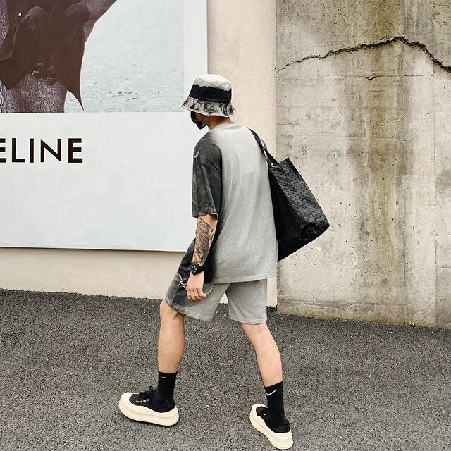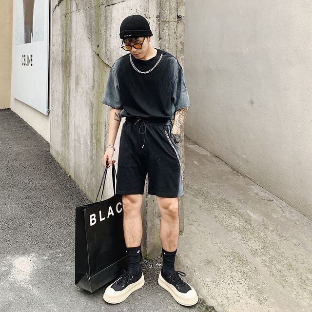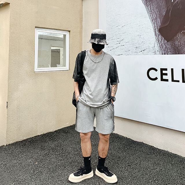 【予約販売】メンズ セットアップ 上下 半袖 ハーフパンツ ストリート グラデーション ブラック グレー 部屋着 ジム スポーツウエア カジュアル 春 夏 大きいサイズ M/L/XL