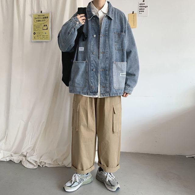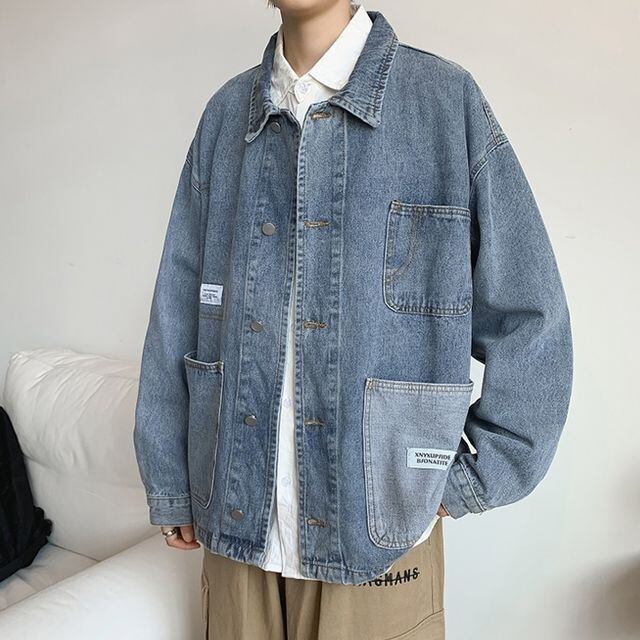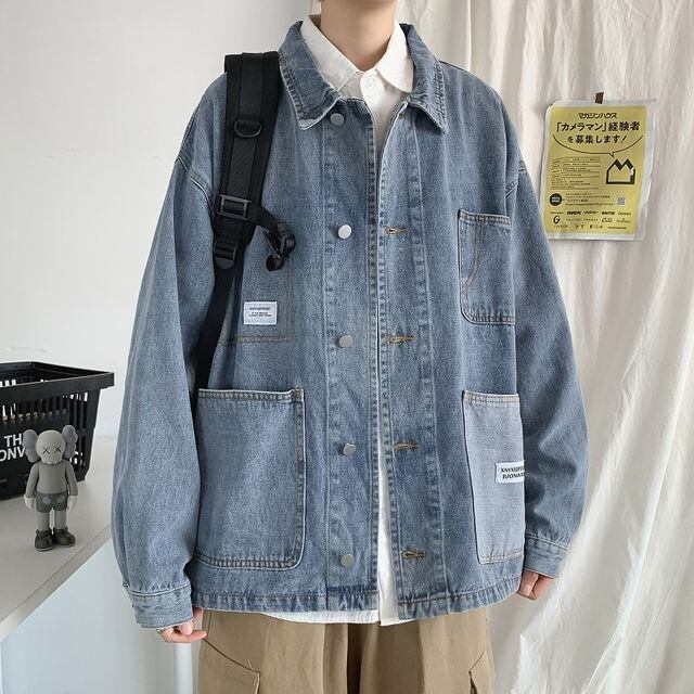 【予約販売】デニムジャケット タグ ポケット アウター オーバーサイズ ジージャン メンズ ブルー お洒落 こなれ感 ベーシック 大きいサイズ M/L/XL/2XL/3XL