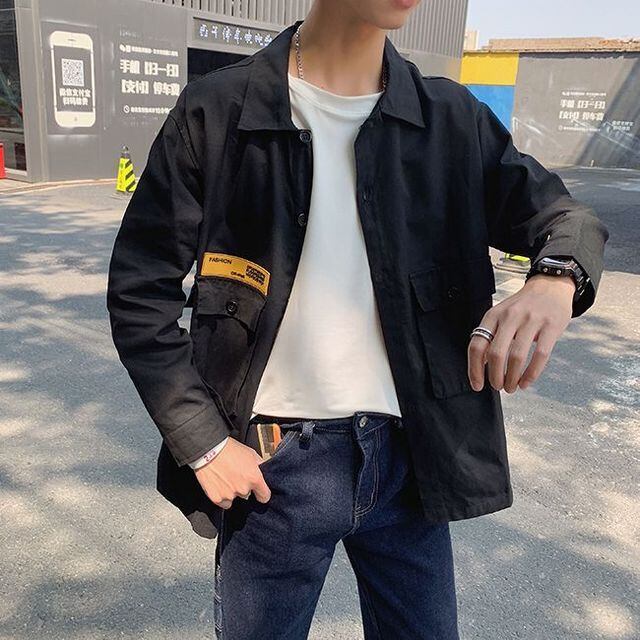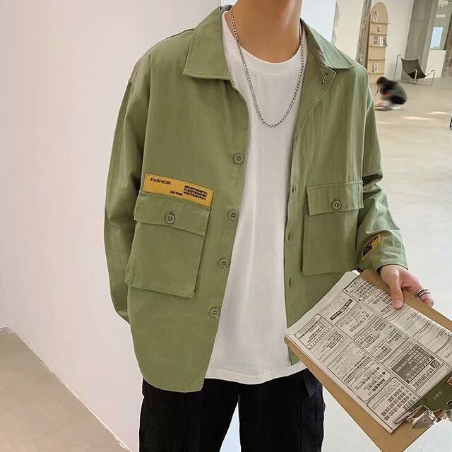 【予約販売】シャツ ミリタリー 長袖 アメカジ メンズ オーバーサイズ カーキ ARMY カジュアル シンプル こなれ感 お洒落 韓国 トレンド 春 夏 秋 M/L/XL/2XL