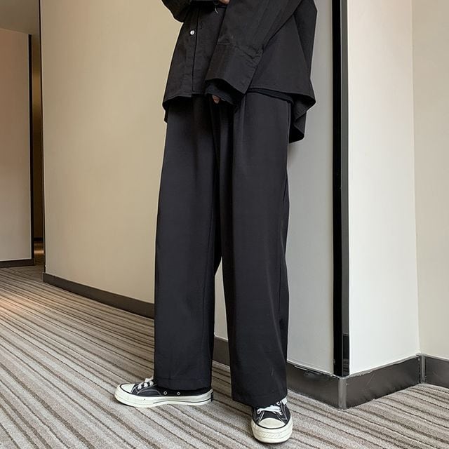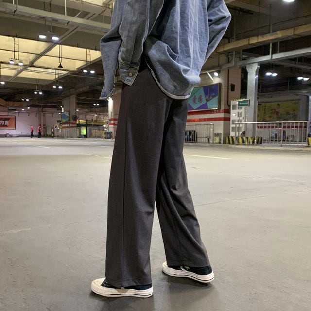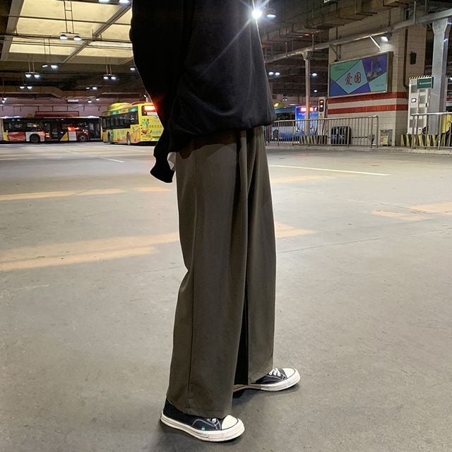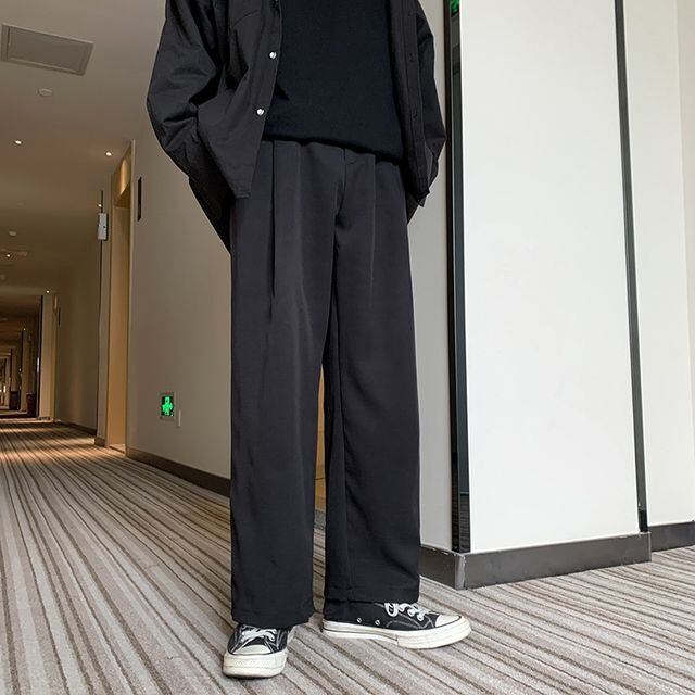 【予約販売】ワイドパンツ メンズ ワイドレッグ ストリート ブラック グレー カーキ ルーズシルエット ダンス こなれ感 お洒落 韓国 トレンド 春 夏 秋 M/L/XL/2XL