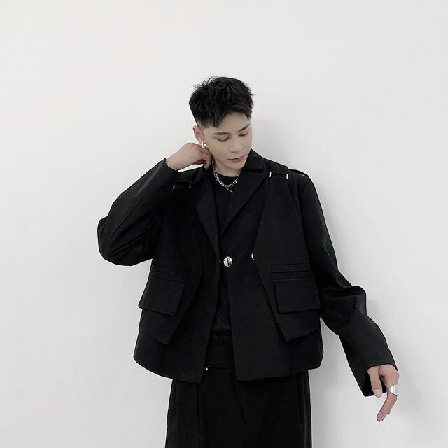 【予約販売】ジャケット 無地 アウター ベストジャケット メンズ ブラック カジュアル こなれ感 お洒落 韓国トレンド 春 秋 大きいサイズ M/L/XL