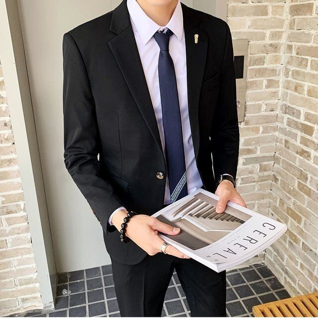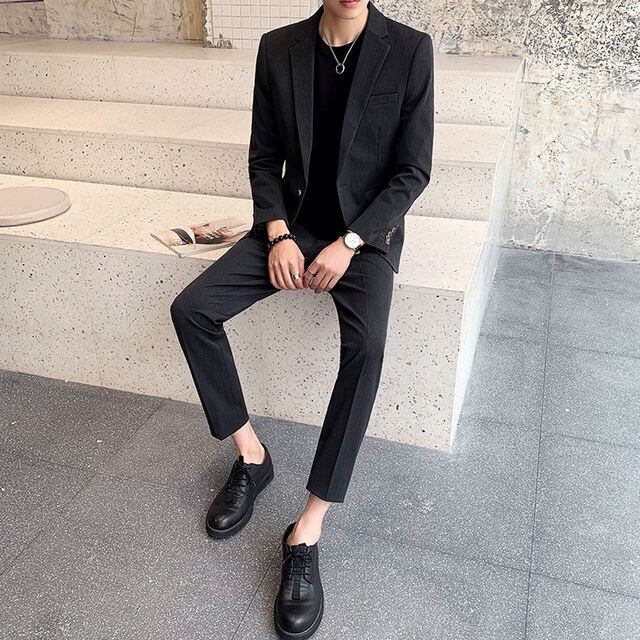 【予約販売】メンズ スーツ 無地 シック スリム 男前 ブラック グレー ジャケット パンツ セット セットアップ パーティ 二次会 同窓会 結婚式 韓国 トレンド 大きいサイズ M/L/XL/2XL/3XL/4XL