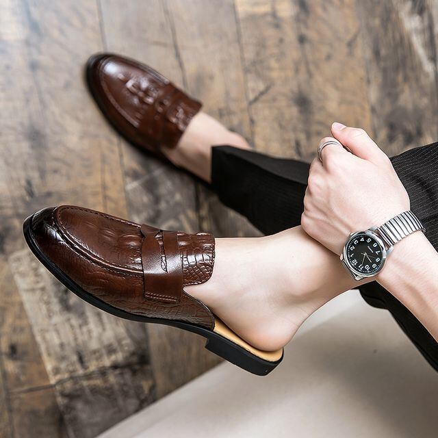 【予約販売】メンズ フラット 型押し ローファー バブーシュ スリッパ 靴 ブラック ブラウン お洒落 こなれ感 24.5cm/25cm/25.5cm/26cm/26.5cm/27cm
