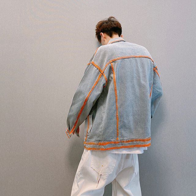 【予約販売】デニムジャケット パイピング カラーリング ペイント アウター オーバーサイズ ジージャン メンズ ブルー M/L/XL/2XL