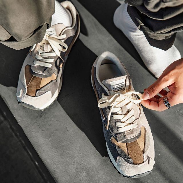 【予約販売】スニーカー シューズ 靴 グレー 配色 レトロ ランニング 韓国 トレンド カップル お洒落 カジュアル ストリート 24cm/24.5cm/25cm/25.5cm/26cm/26.5cm/27cm