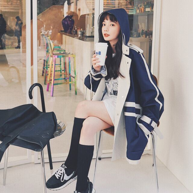 コート レディース バイカラー おしゃれ ミドルレングス アウター ネイビー S/M/L/XL