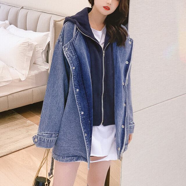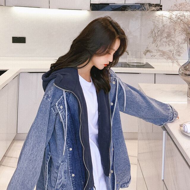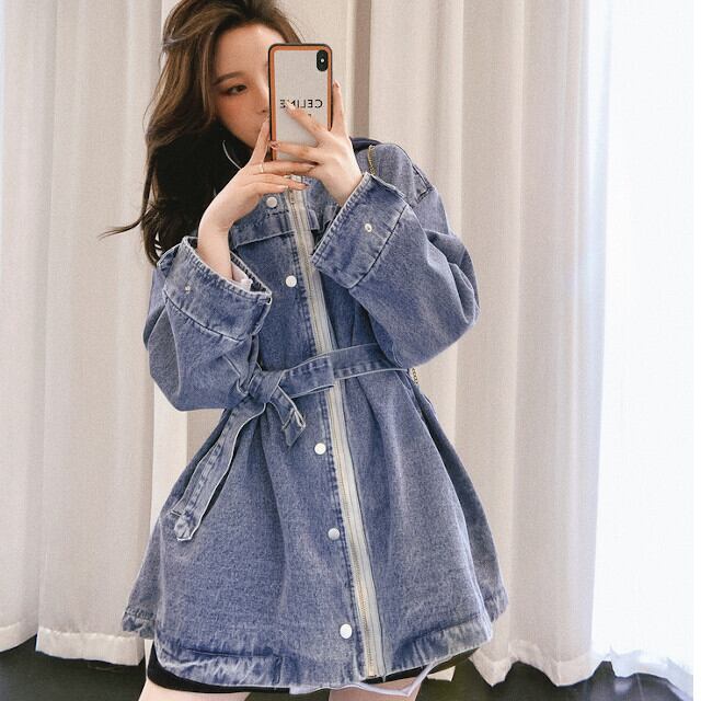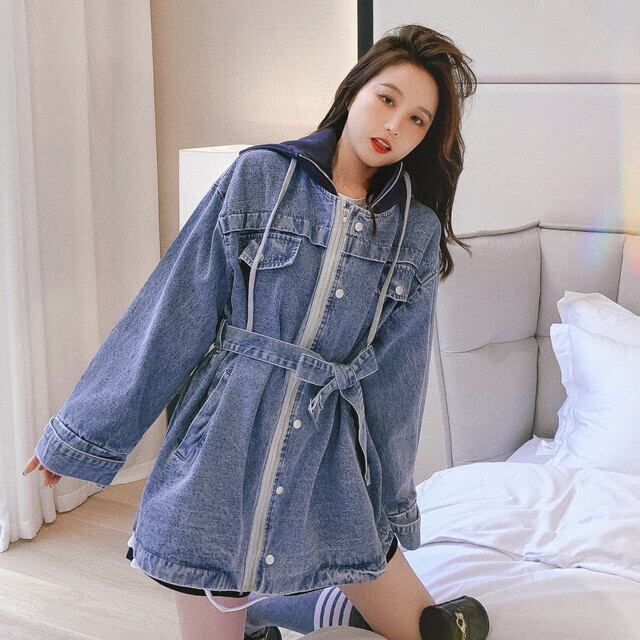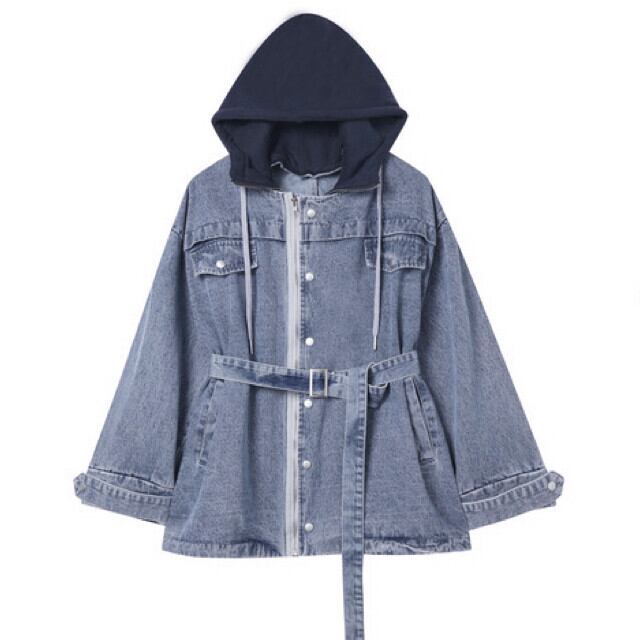 ジャケット レディース ウエストベルト フード付き レイヤード風 かっこいい ストリート カジュアル デニム S/M/L/XL
