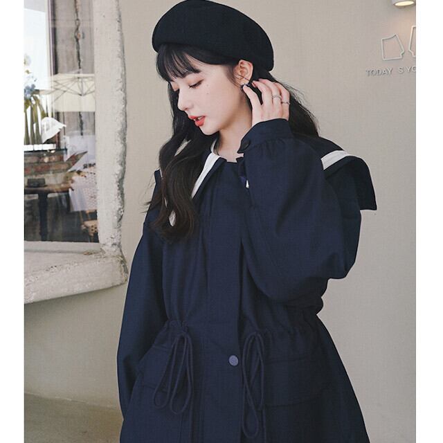 ジャケット レディース セーラー ルーズフィット オーバーシルエット ボリューム袖 ネイビー S/M/L/XL