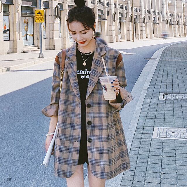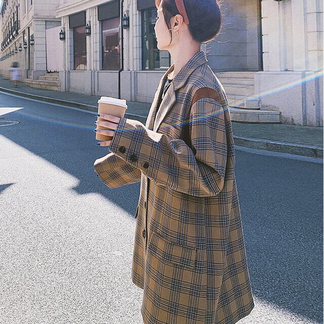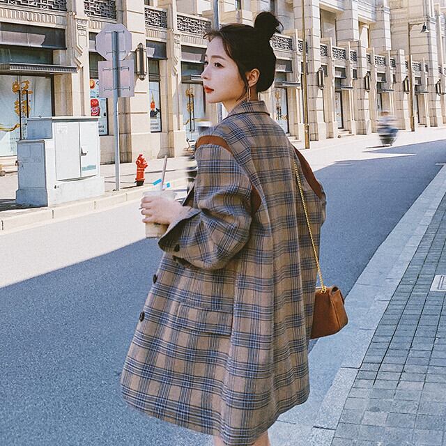 ジャケット レディース コート アウター オーバーシルエット レトロ チェック柄 ブラウン S/M/L/XL