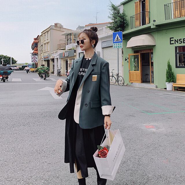 ジャケット レディース ダブル おしゃれ 長袖 ユニーク アシンメトリー 配色 ダークグリーン S/M/L