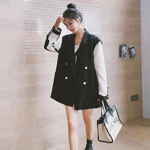 ジャケット レディース 長袖 ゆったり 異素材ミックス ストライプ ユニーク バイカラー ブラック S/M/L/XL
