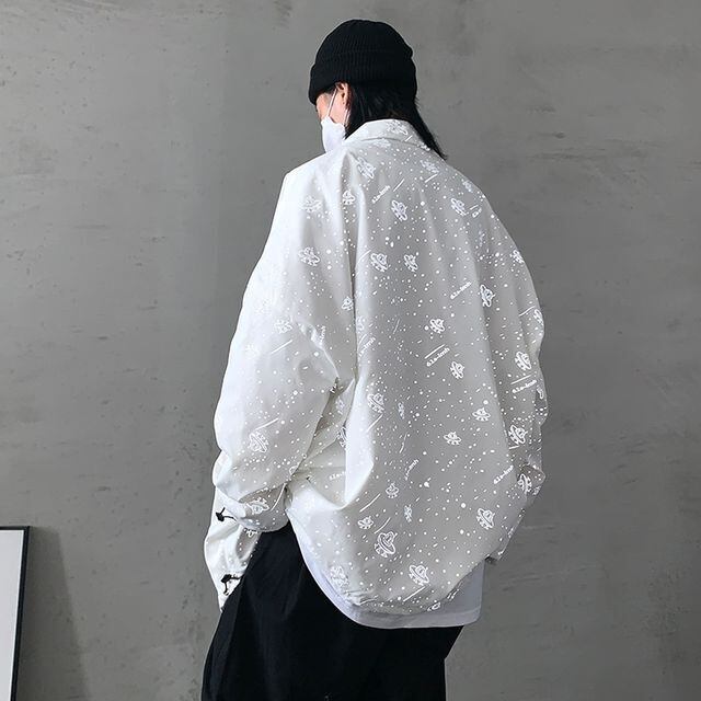 【予約販売】ナイロンジャケット ブルゾン アウター 反射 宇宙柄 メンズ ブラック ホワイト お洒落 こなれ感 ベーシック 秋 春 大きいサイズ M/L/XL/2XL