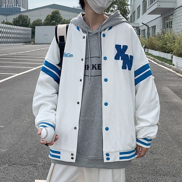 【予約販売】スタジャン ジャケット ブルゾン アウター オーバーサイズ メンズ ブラック ホワイト お洒落 こなれ感 ベーシック 秋 春 大きいサイズ M/L/XL/2XL/3XL