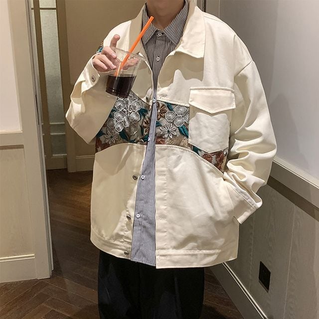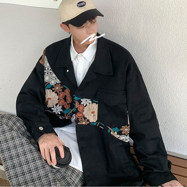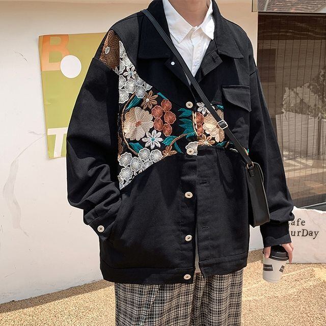 【予約販売】ジャケット ブルゾン アウター レトロ 刺繍 花柄 メンズ お洒落 ブラック ベージュ こなれ感 ベーシック 秋 春 大きいサイズ M/L/XL/2XL/3XL/4XL/5XL