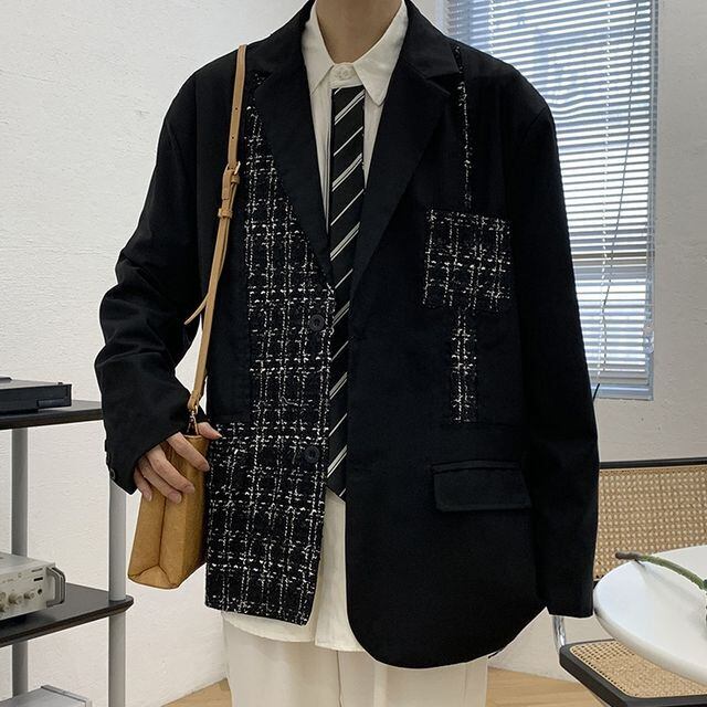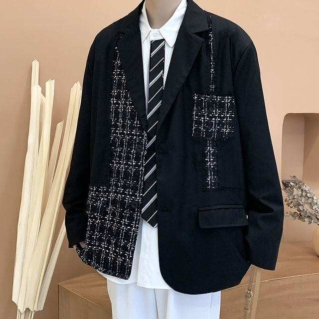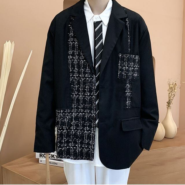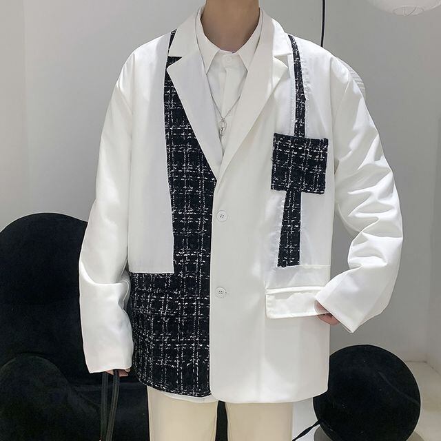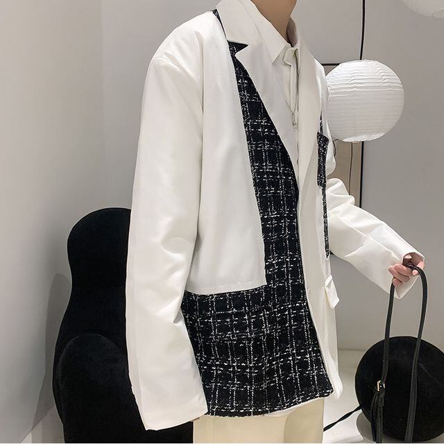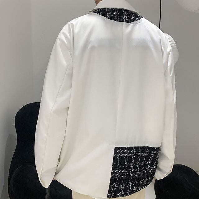 【予約販売】テーラードジャケット バイカラー ツイード アウター ジャケット メンズ ホワイト ベージュ ブラック カジュアル こなれ感 お洒落 韓国トレンド 春 秋 大きいサイズ S/M/L/XL/2XL/3XL