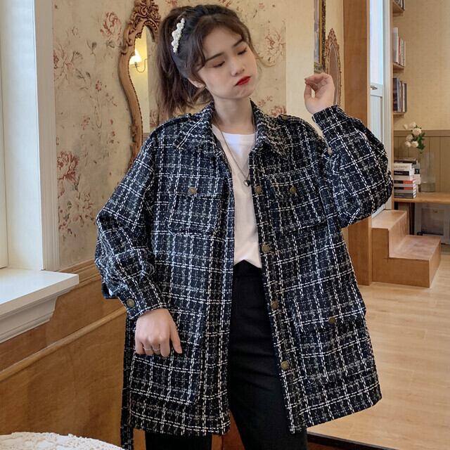 コート レディース アウター チェック柄 カジュアル かわいい ブラック/ホワイト M/L