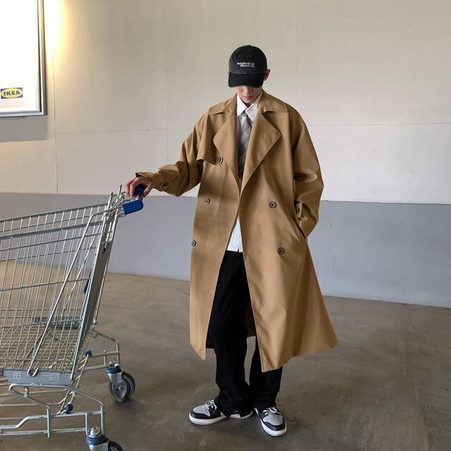 【予約販売】トレンチコート ロング丈 コート アウター メンズ お洒落 ベーシック ブラック ベージュ カーキ こなれ感 ベーシック 秋 春 通勤 大きいサイズ S/M/L/XL