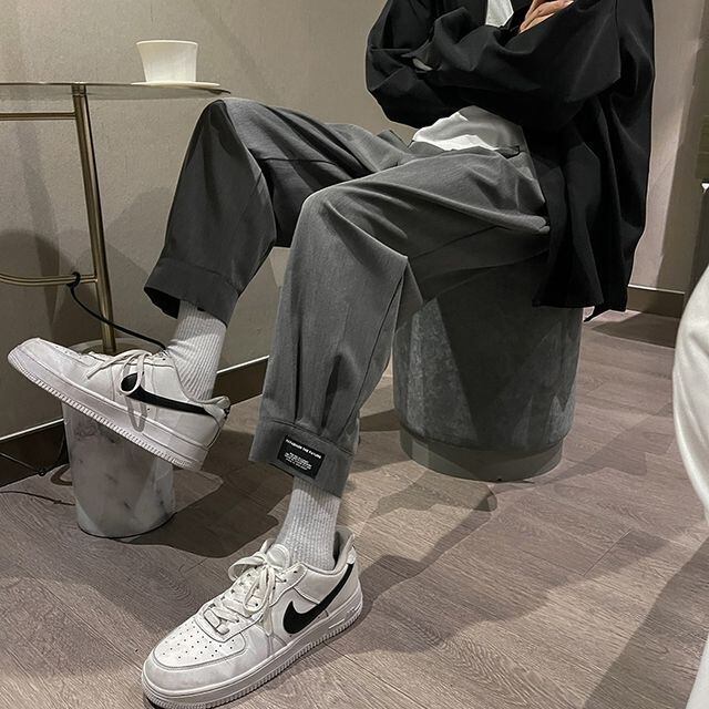 【予約販売】パンツ メンズ ボトムス 裾タグ シンプル ブラック グレー ベージュ ストリート スタイリッシュ こなれ感 カジュアル 部屋着 韓国 トレンド 春 夏 秋 M/L/XL/2XL/3XL