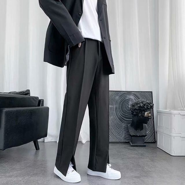 【予約販売】ストレートパンツ メンズ ボトムス スリット シンプル ブラック シック スタイリッシュ こなれ感 カジュアル 韓国 トレンド 春 夏 秋 S/M/L/XL/2XL/3XL