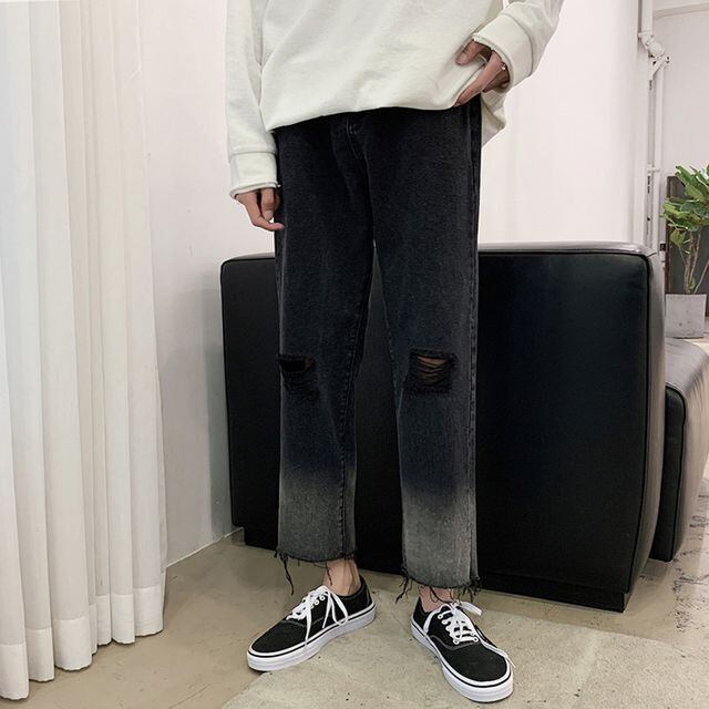 【予約販売】デニムパンツ メンズ ボトムス 切りっぱなし アンクル丈 グラデーション シンプル ブラック スタイリッシュ こなれ感 カジュアル 韓国 トレンド 春 夏 秋 S/M/L/XL/2XL/3XL