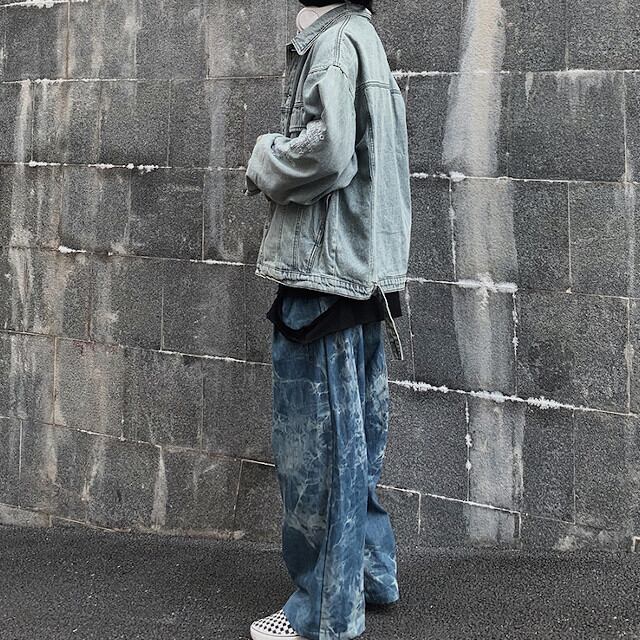 ジャケット アウター メンズ デニム 刺繍 ゴッホ アート 芸術 ユニーク かっこいい ダメージ 色落ちデニム M/L/XL